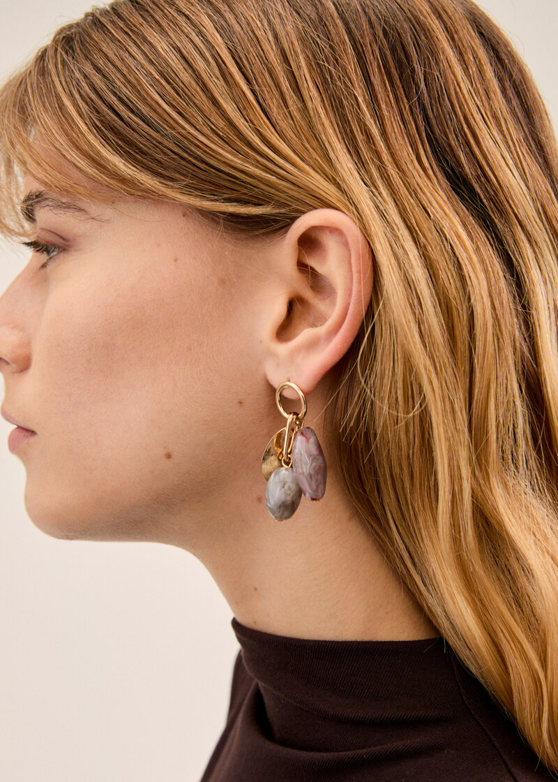 Orecchini a cerchio con pendenti in resina marmorizzata e metallo. Un accessorio fresco e dinamico perfetto per un look contemporaneo e vivace.