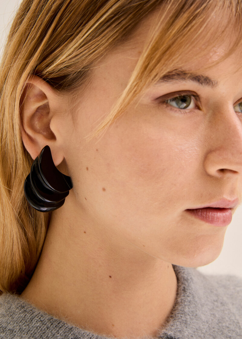 Orecchini a lobo dal design scultoreo, perfetti per chi ama accessori di carattere. L’effetto tridimensionale dona un tocco moderno e audace, ideale per completare qualsiasi outfit con originalità.